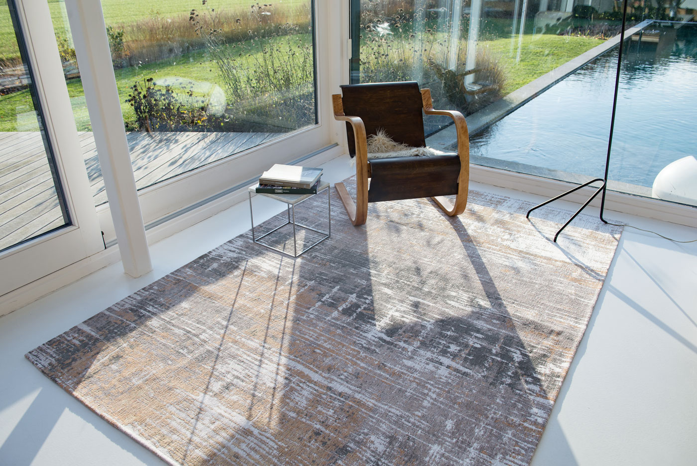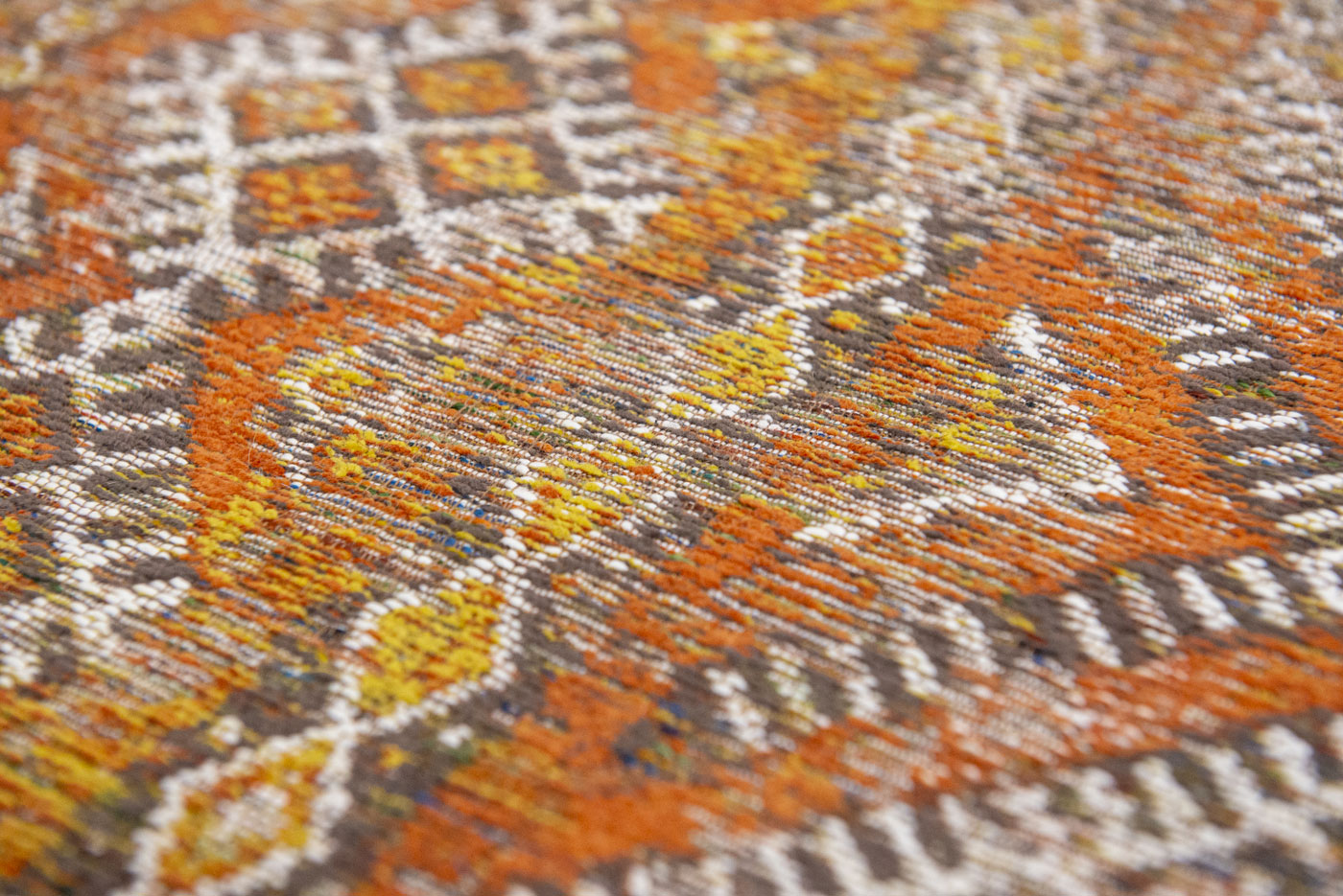 Koberce s protikluzným rubem jsou tkané na speciálním žakárovém Wiltonu s kombinací vlny a bavlněné žinylky.